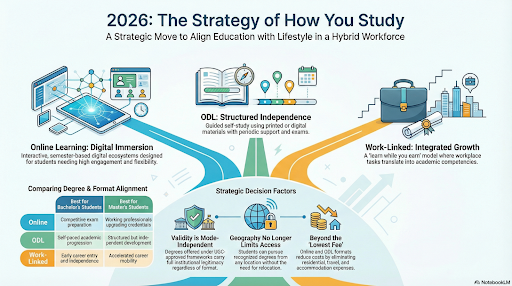 For decades, students chose degrees based on subject, reputation, and location. The mode of study was rarely the deciding factor. In 2026, that logic no longer holds. The format through which a bachelor's or master's degree is pursued—online learning, open and distance learning (ODL), or work-linked programs—increasingly shapes not only convenience, but skill development, career alignment, and long-term professional identity.